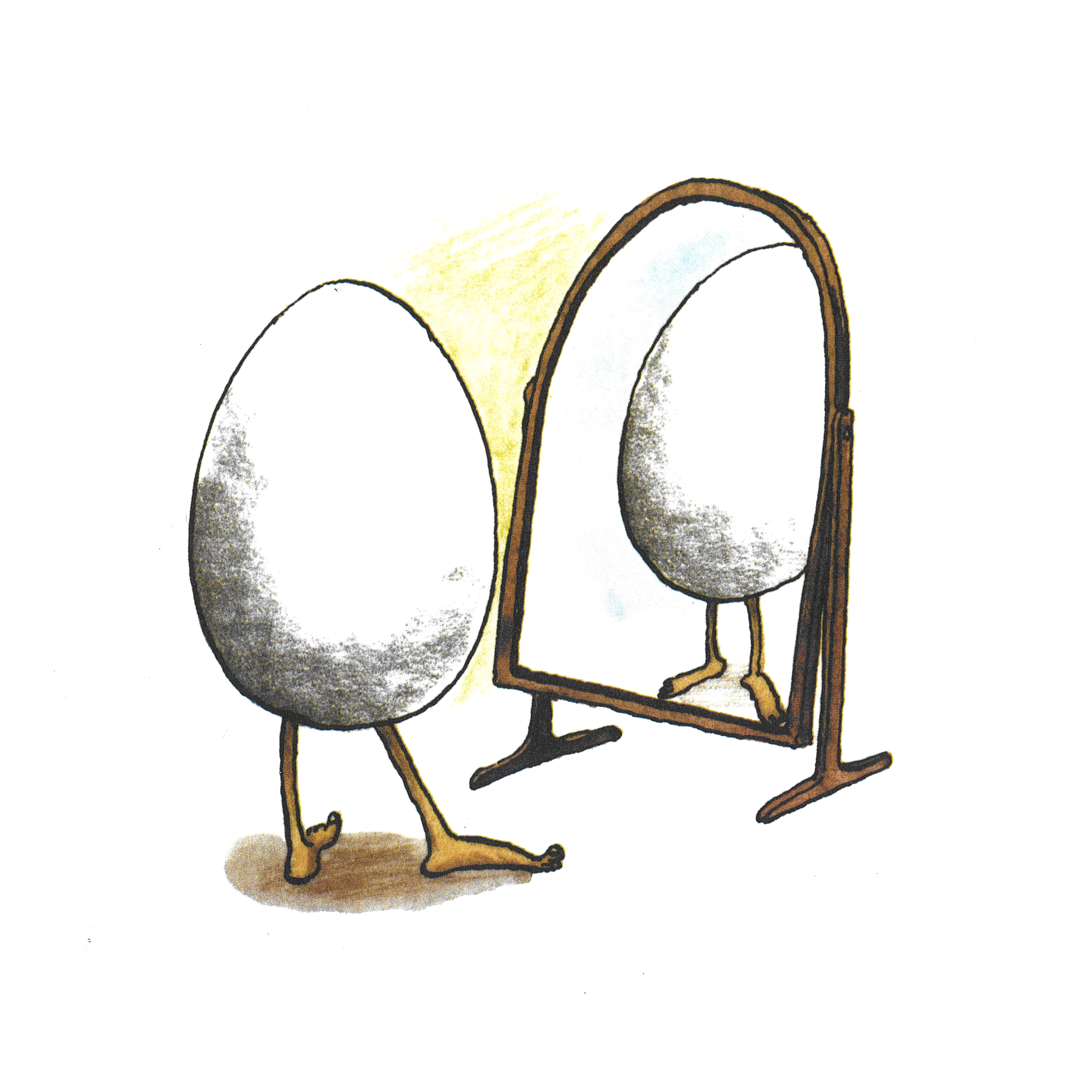 Ägget funderar på vad det ska bli. Något stort vill det bli och kunna flyga och simma. Fötter vill ägget också ha och kanske glasögon och kunna cykla! När det kläcks har det visserligen blivit allt det som det drömde om, och mer därtill, men är ändå inte riktigt nöjd…