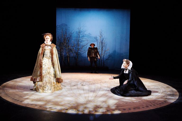 Maria och Elisabeth möts bara i Schillers drama, i parken utanför slottet Fotheringhay. Det är dramatikerns konstruktion, historiska gestalter utsatta för konstens konfrontation: