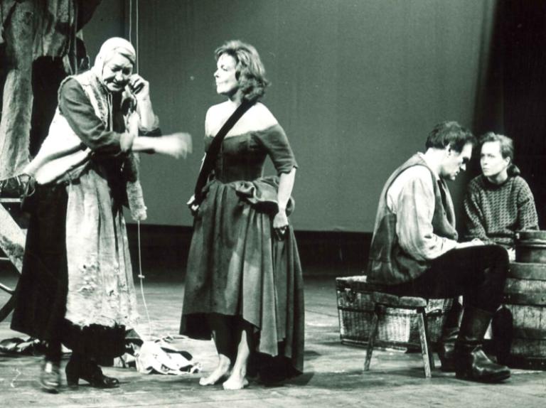 Brecht krönika från trettioåriga kriget Mutter Courage och hennes barn tillkom i Sverige 1939 på flykt undan nazismen. Pjäsen är en appell till besinning, som tyvärr kom för sent i förhållande till andra världskrigets grymheter, men som sorgigt nog fortfarande har en förfärande giltighet i sin beskrivning av krigets mekanismer.