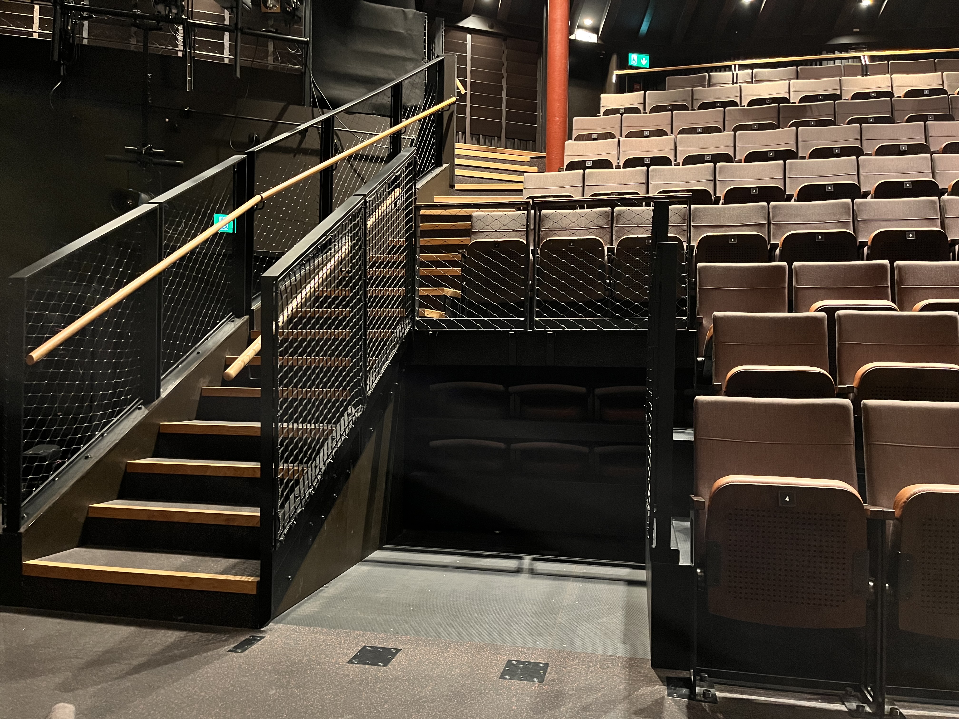 Rullstolsplatserna på övre parkett nås via en hiss till vänster innanför entrén när du kommer in i foajén. Så här ser hissen ut.